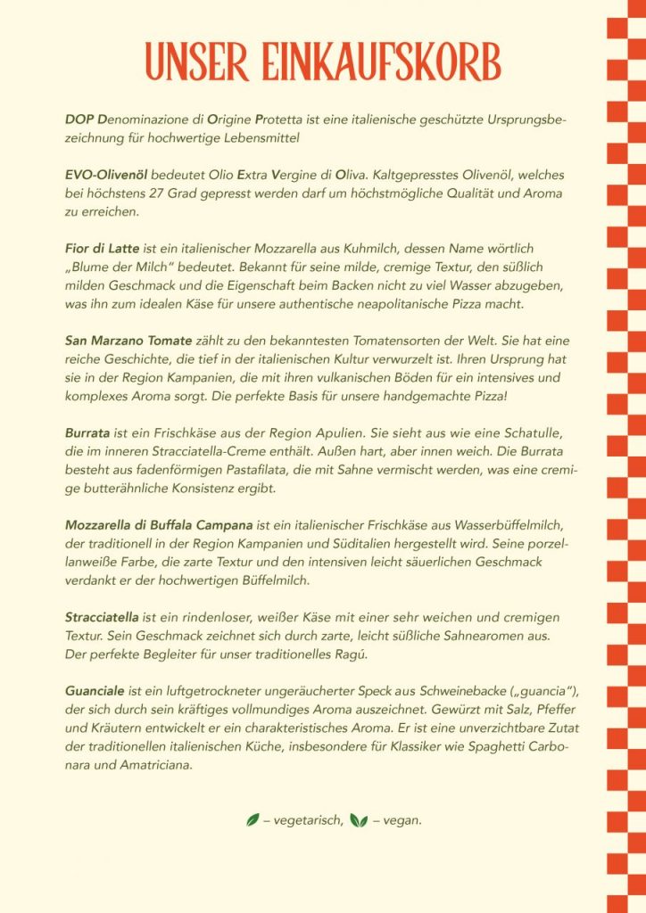 Unsere Pizza wird nach original neapolitanischer Tradition mit einem luftig aromatischen Sauerteigrand gebacken. Veredelt mit ausgewählten Zutaten von höchster Qualität, vielfach ausgezeichnet mit dem D.O.P.-Siegel wie sonnenverwöhnten San-Marzano-Tomaten oder cremigem Büffelmozzarella aus Kampanien – vereint sie Handwerkskunst und authentischen Geschmack Italiens.
